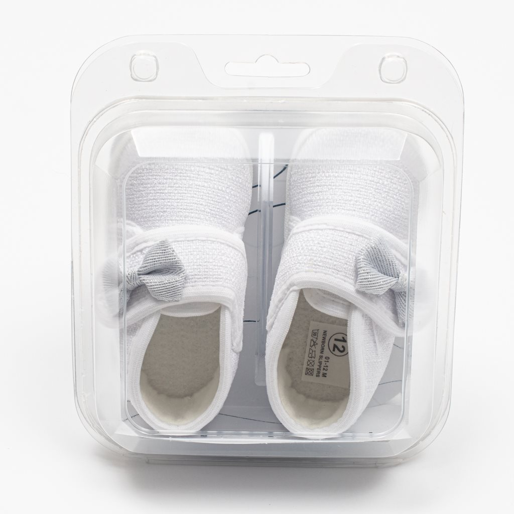 Kojenecké capáčky New Baby pro miminka. Krásné botičky s moderním vzhledem na suchý zip. Capáčky přiléhají k nožičce a mají široký vnitřek, což umožňuje volný pohyb prstů a svalů. Výrobek není určen k chůzi. Jsou velmi lehké s tenkou syntetickou podrážkou. Složení: tkanina typu len:100% polyester. Podrážka: syntetický materiál PVC bez BPA. Délka vnitřní stélky 10 cm. Určeno pro děti 0-3 měsíců. Dodáváné v praktické krabičce. Upozornění: pod textilní vložkou se někdy nachází papírová vložka, která drží tvar capáčky. Před prvním použitím odstraňte tuto papírovou vložku.