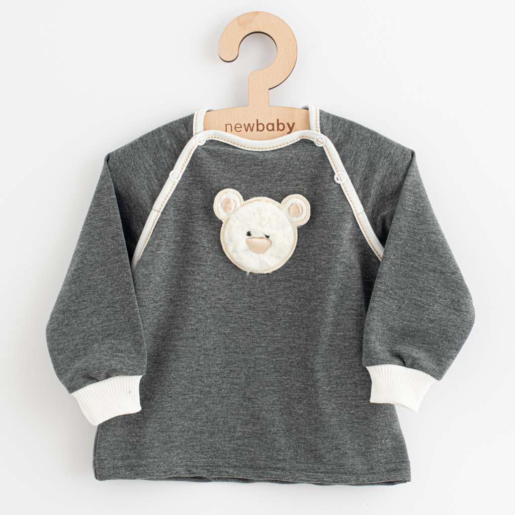 Stylová 2-dílná soupravička české značky New Baby Sebastian. Součástí soupravičky jsou tepláčky a mikinka. Mikinka je zdobena obrázkem medvídka. Mikinka má zapínání na cvočky pod ramínkem. Tepláčky mají na nohavičkách a v pase širší lem. Soupravičku skvěle využijete nejen do kočárku, autosedačky, ale i na procházky či jako pohodlné oblečení na doma. Dokonalá a stylová soupravička do šatníku chlapečků. Materiál: 95% bavlna, 45% elastan.