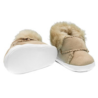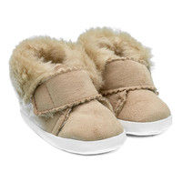 Kojenecké zimní capáčky New Baby pro miminka. Krásné, teplé semiškové capáčky s moderním vzhledem a zapínáním na suchý zip. Vnitřní část je vystlaná rounovou pleteninou-100% polyester. Capáčky přiléhají k nožičce a mají široký vnitřek, což umožňuje volný pohyb prstů a svalů. Výrobek není určen k chůzi. Jsou velmi lehké s tenkou syntetickou podrážkou. Složení: ekologický semiš - 100% polyester, rounová pletenina-100% polyester. Podrážka: syntetický materiál PVC bez BPA. Délka vnitřní stélky 10 cm. Určeno pro děti 0-3 měsíců. Dodáváné v praktické krabičce. Upozornění: pod textilní vložkou se někdy nachází papírová vložka, která drží tvar capáčky. Před prvním použitím odstraňte tuto papírovou vložku.