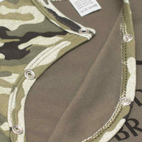 Stylový bavlněný kojenecký overal české značky New Baby Army boy pro miminka. Dětský overálek je zdoben maskáčovým potiskem a nápisem DADDY´S BRAVE GIRL. Na ručičkách je pružný lem, který netlačí a ulehčí oblékání. Overálek je pro miminka důležitým kouskem oblečení. Při jakémkoliv pohybu jsou zádička miminka stále přikrytá. Praktické boční zapínání na cvočky po celé délce a mezi nožičkami velmi usnadní oblékání a přebalování. Army styl se vrátil do módy a je dechberoucí. Klademe důraz na kvalitu a proto se díky příjemnému, měkkému a kvalitnímu materiálu, bude Vaše miminko cítit velmi příjemně. Složení: 100% bavlna.