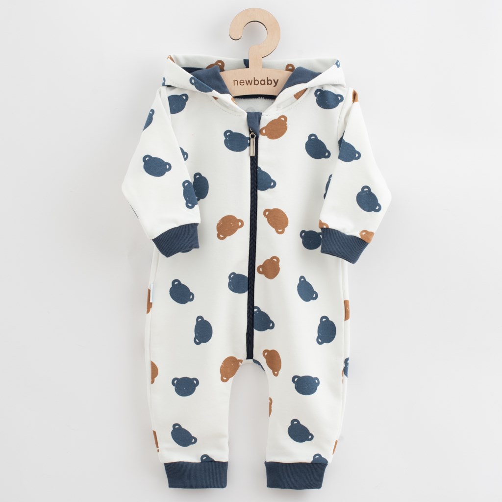 Roztomilý a praktický overal s kapucí české značky New Baby Little One. Overálek je celopotištěný medvídky, má zapínání na zip po celé délce a pružné lemy na rukávcích a nohavičkách. Kapuce je podšitá barevnou podšívkou a je zdobena roztomilou bambulkou. Overal je vyroben z pohodlné teplákoviny. Vhodný pro celoroční nošení. Materiál: 96% bavlna, 4% elastan.