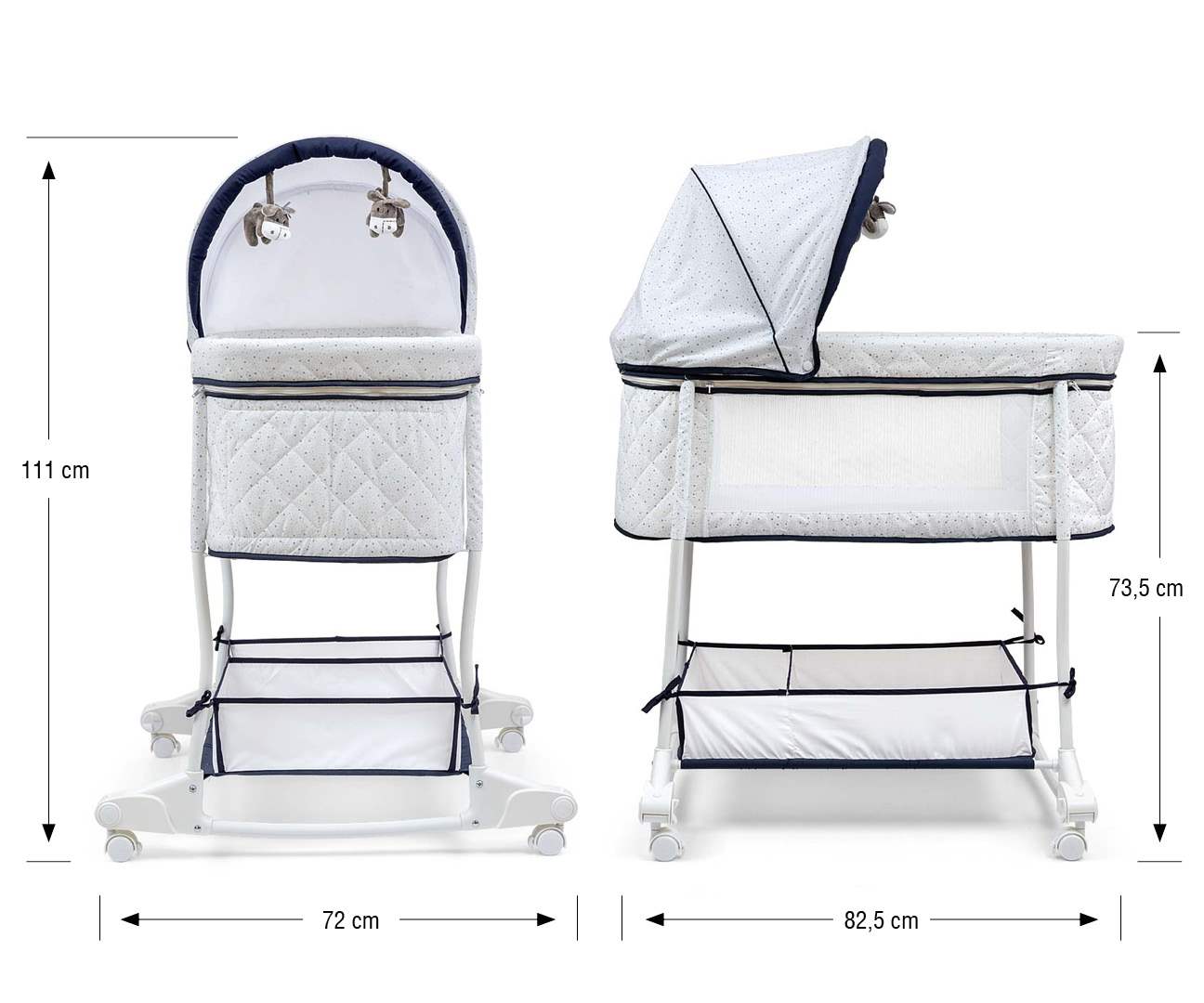 Výška od podlahy k přenosné postýlce ve variantě kolébky: 73,5 cm