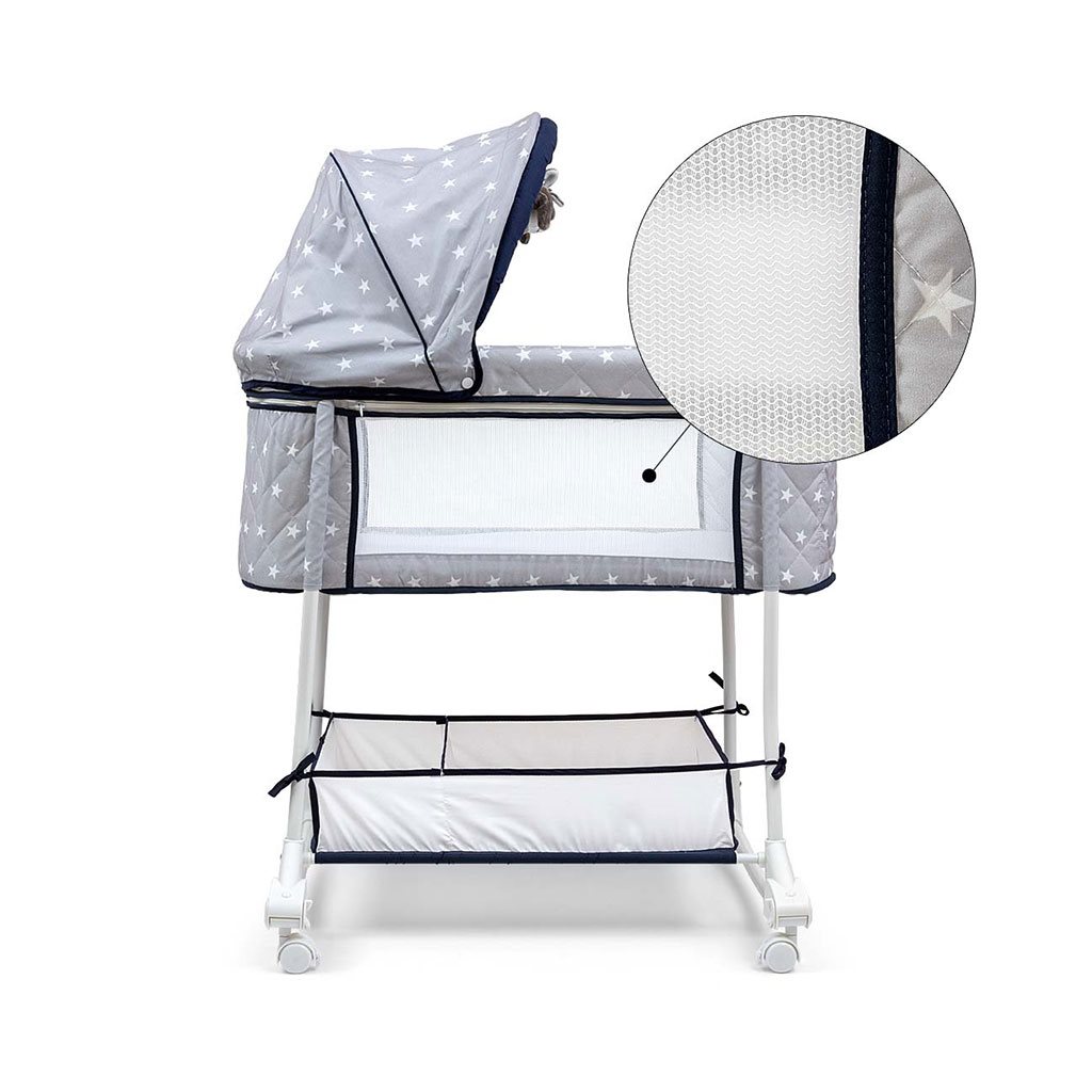 Dream On může sloužit jako první postýlka pro novorozence, zejména když potřebují blízkost rodičů v prvních dnech života. Díky svým kompaktním rozměrům se postýlka vejde do každé ložnice i mimo ni. Vysoké bočnice ze síťoviny zajišťují dostatečnou cirkulaci vzduchu a umožňují rodiči mít plnou kontrolu a rychle reagovat, když se dítě probudí. Díky tomu se dítě rychleji uklidní a lépe usne. Kolébka/postýlka je vybavena praktickým úložným prostorem - košíkem na dětské potřeby a příslušenství umístěným ve spodní části, má 2 přihrádky.