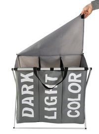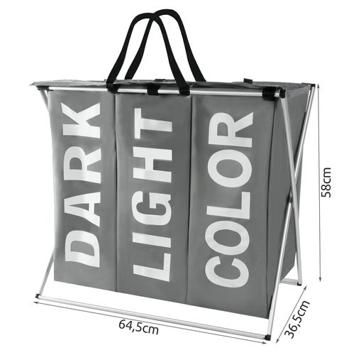 Moderní a prostorný koš s třemi oddělenými komorami pro snadné třídění tmavého, světlého a barevného prádla. Pevný rám zajišťuje stabilitu a díky víku s suchým zipem neunikají nepříjemné pachy. Vhodné i jako organizér do dětského pokoje.