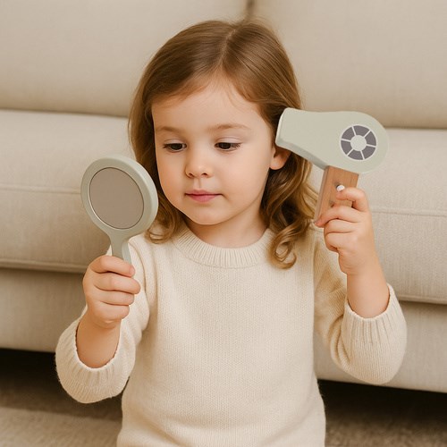 Učení skrze hraní rolí – hraní na stylistku, kadeřnici či vizážistku buduje sebevědomí, empatii a sociální dovednosti dítěte.