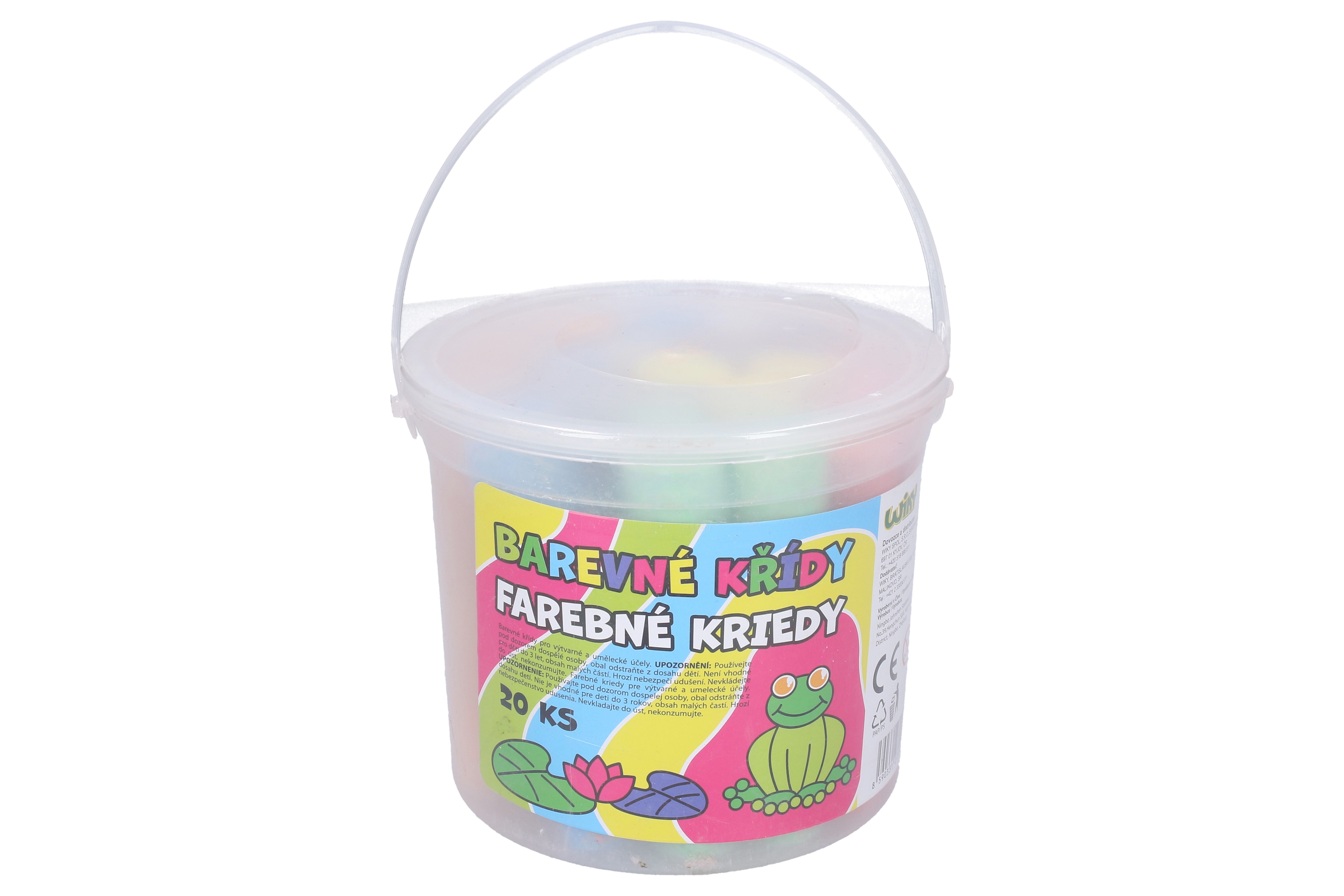 Kulaté barevné chodníkové křídy v kyblíku.