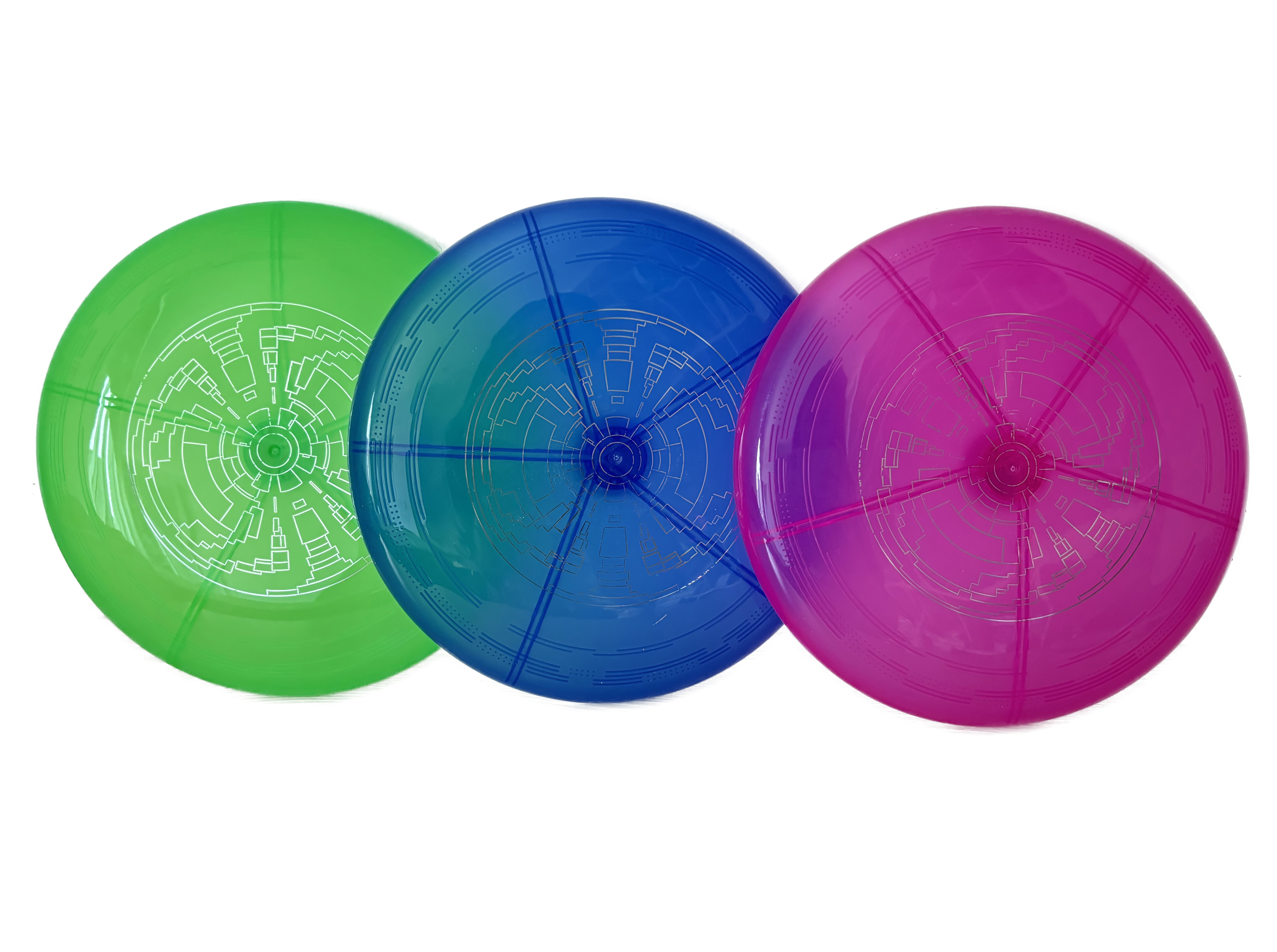 Létající talíř. Vydává světelné efekty. Rozměry talíře 23x23x2,5 cm. Baterie 1x3V součástí balení. 3 varianty - zelená, modrá, růžová.