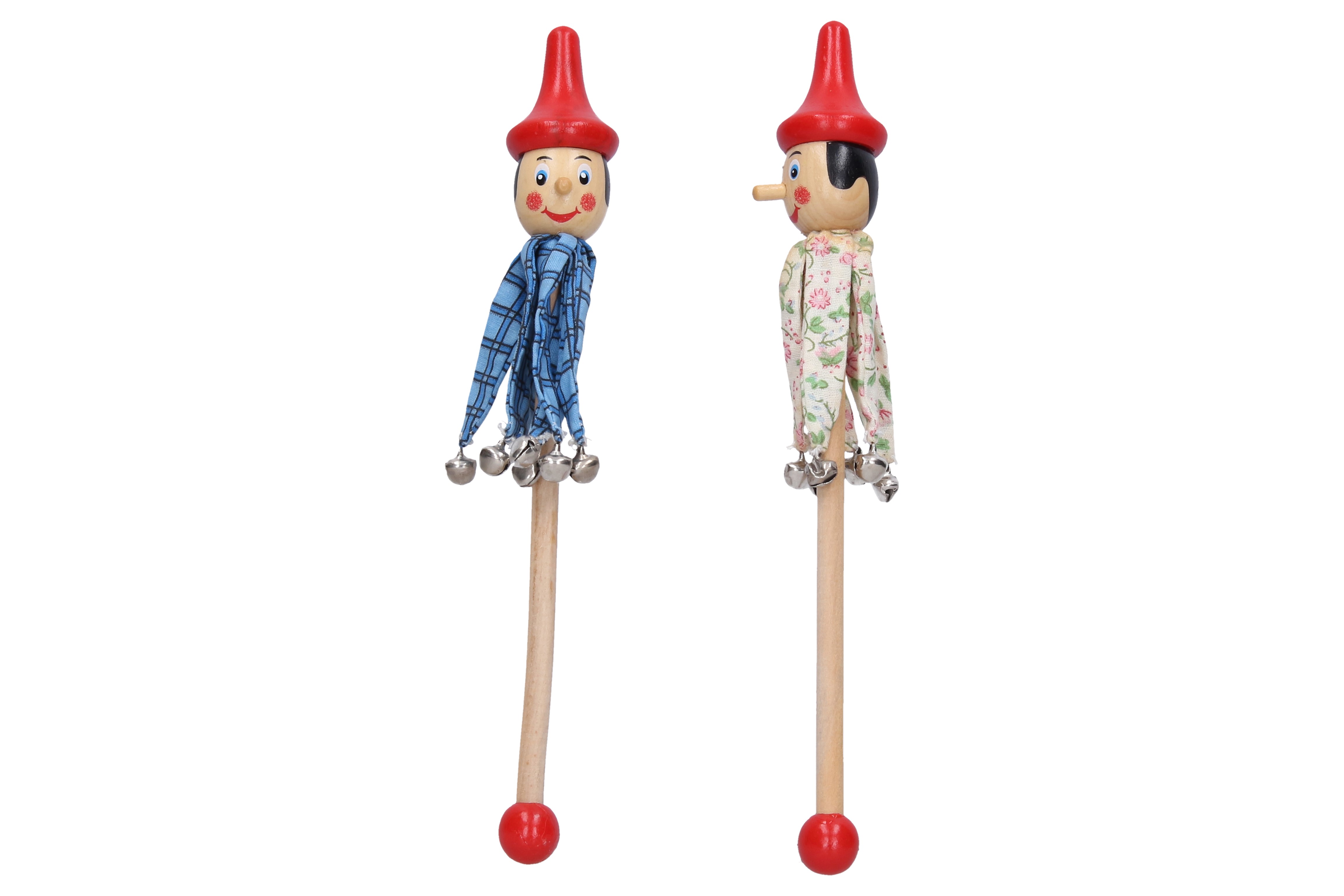 Loutka Pinocchio. Velikost 24 cm. Dřevo a textil. s rolničkami, více variant