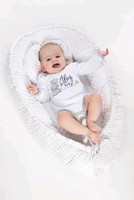 Luxusní hnízdečko s peřinkou pro miminka New Baby. Hnízdečko je praktický vynikající pomocník v prvních měsících života dítěte. Hnízdečko je oboustranné, může se používat z vnější i vnitřní strany. Oboustranné přítulné hnízdečko pro miminko navozuje pocit bezpečí a děťátko se cítí spokojeně jako u maminky v bříšku. Miminku se daleko lépe usíná a je klidnější. Hnízdečko má praktickou šňůrku, kterou lze upravovat velikost, může se více stáhnout anebo úplně uvolnit. Hnízdečko je vyrobené ze dvou typů tkanin, první je velmi měkká a na dotek příjemná, hebká Minky látka s výstupky pro stimulaci senzomotoriky a druhá je 100% bavlna. Součástí hnízdečka je polštářek ve tvaru srdce a peřinka zdobená srdíčkem. Hnízdečko má mnoho využití, lze používat v postýlce, v kočárku, na pohovce i na zemi. Rozměry: cca 55x75 cm, vnitřní rozměry: cca 35x59 cm. Peřinka: Rozměry: 65x47 cm. Složení: jedna strana 100% bavlna, druhá strana minky 100% polyester, výplň: antialergické vlákno. Produkt české značky.