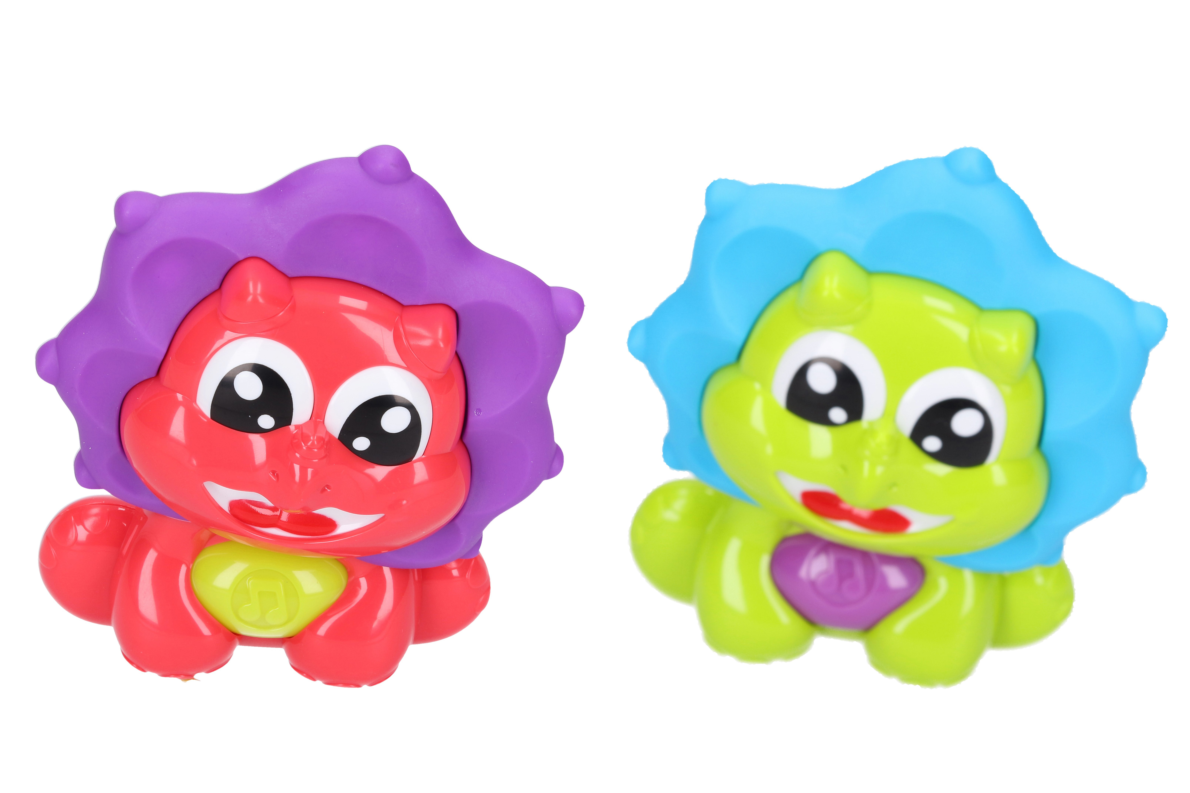 Maamaa Dino. Světelné a zvukové efekty otočením válečku s notou. 3xAG13 baterie součástí. Přepínač ON/OFF na zadní straně. 2 varianty - zelená, červená.