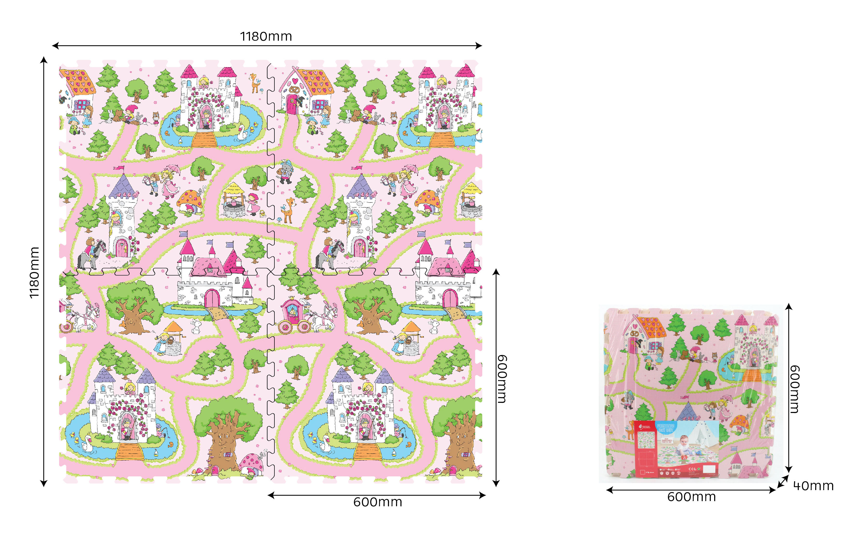 Měkké bloky, motiv pohádková princezna. Rozměry 60 x 60 cm, balení obsahuje 4ks. Tloušťka 1 cm.