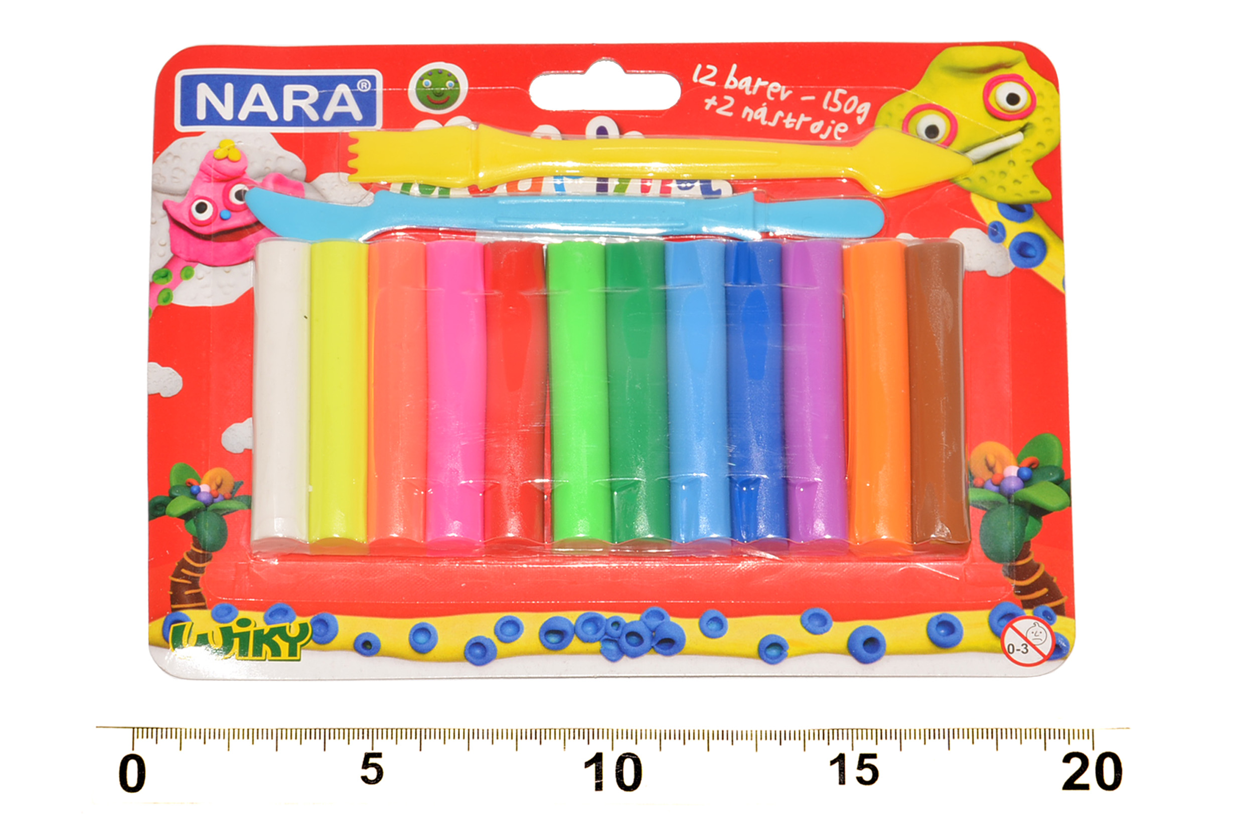 Balení modelíny + modelovací nástroje v nádherných odstínech. Už jste někdy viděli takovou krásnou žlutou? Nebo ta fialová! Plastelína je v balení po 12 barvách.