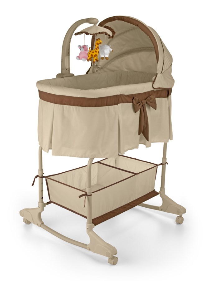 Krásná, dětská multifunkční kolébka a postýlka v jednom Milly Mally. Je vhodná pro miminka od prvních dnů života. Na spodní části houpacích lišt jsou kolečka, které je možné jednoduše nadzvednout a zablokovat, tím se kolébka změní na postýlku. Kolečka zaručují jednoduchou manipulaci s postýlkou. Díky veselému kolotoči s krásnými plyšovými hračkami, melodiemi a noční lampičkou bude usínání pro Vaše děťátko příjemnější. Praktickým dálkovým ovladačem lze jednoduše ovládat přehrávání melodií a světlo kolotoče. Výšku kolébky je možné nastavit do 4 poloh. Praktická stahovací bočnice usnadňuje přebalování miminka.