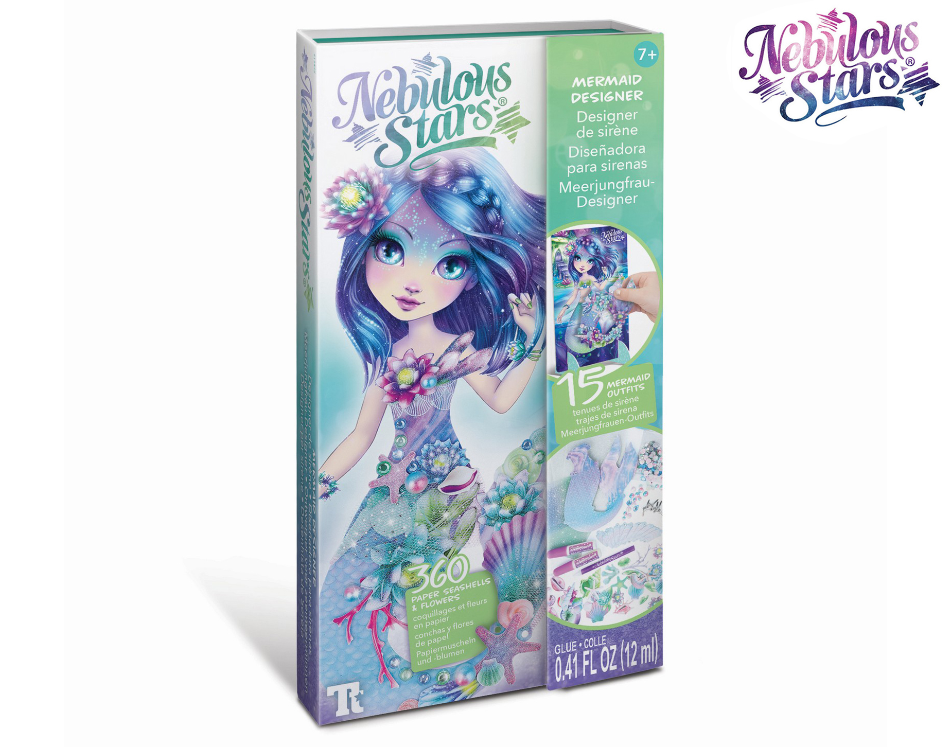 Nebulous Stars Šaty pro mořskou pannu Nenuphia. Obsah balení - stojánek z lepenky pro Nenuphii, 25 papírových šablon, 360 papírových lastur a květů, 4 archy s razítky, lepidlo, kamínky, 10 ozdobných připínáčků, stuha, aplikátor drahokamového pera, návod. Display box - 6 ks.
