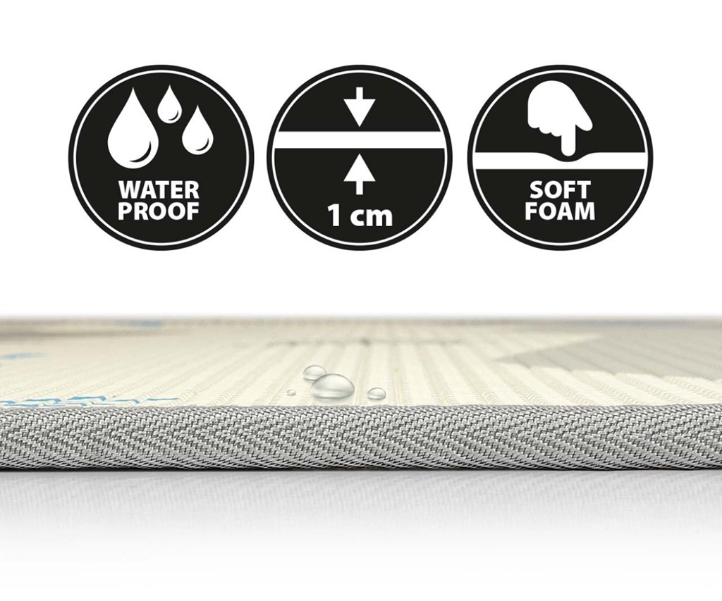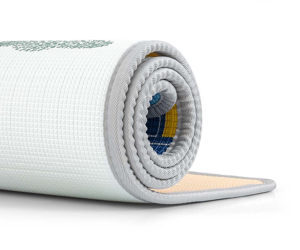 Kreativní a barevné vzory podložky povzbuzují aktivitu, zejména v raných fázích vývoje. Plochý povrch pěnové podložky umožňuje vašemu dítěti modelovat stabilní trup, přirozeně a volně otáčet hlavou, procvičovat rotace, opírat se, správně zatěžovat nohy a stabilně a bezpečně sedět. Rolovací pěnová podložka KINDER je bezpečným a pohodlným místem pro hraní. Produkt poskytuje vynikající izolaci od studených podlah a díky nepromokavému povrchu se snadno čistí a je ideálním doplňkem do každého pokoje. Jeho vysoká flexibilita zajišťuje vynikající tlumení nárazů v případě pádu. Lze jej použít i venku na hladkém povrchu. Naše podložka je také ideální na cesty.