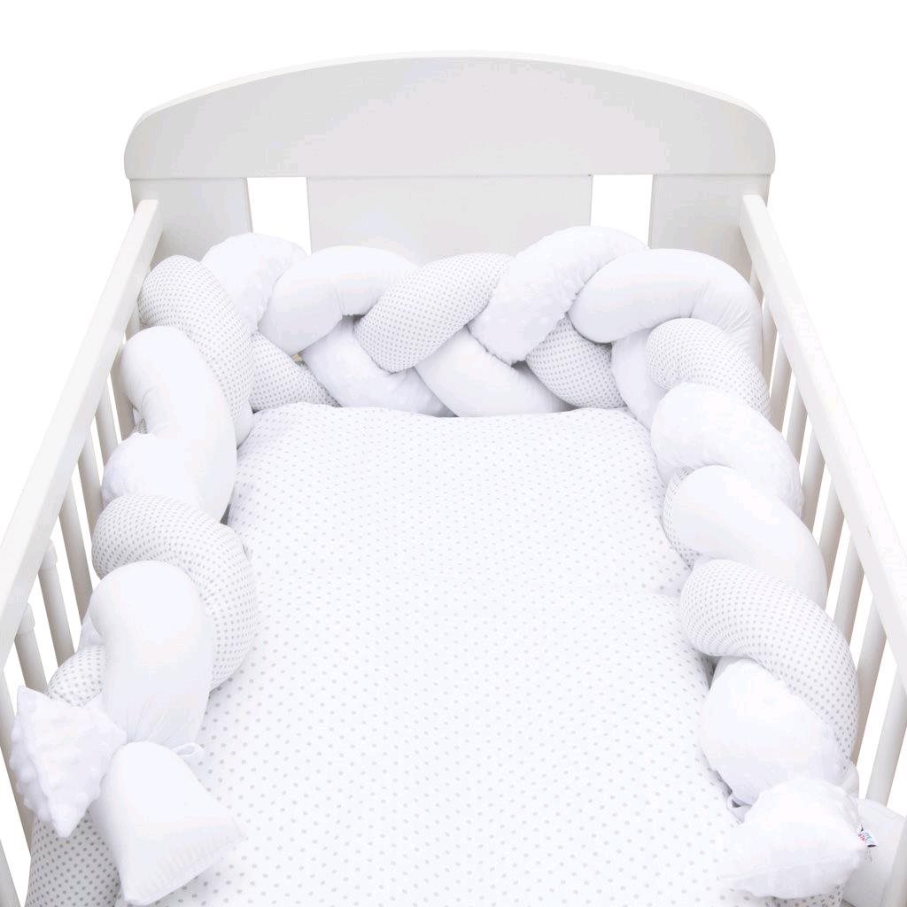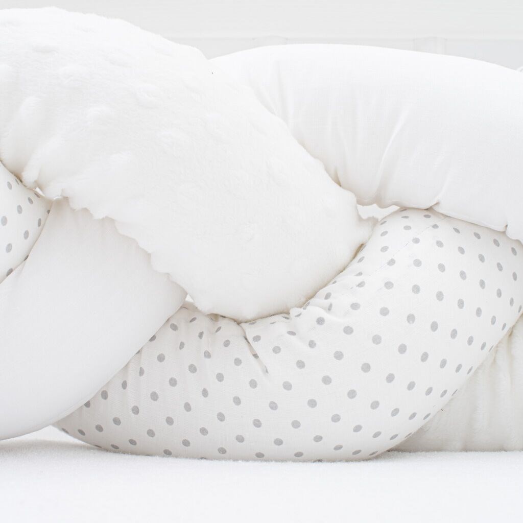 Heboučký a praktický pletený cop české značky New Baby je moderní alternativou tradičního nebo polštářového mantinelu nejen do dětské postýlky. Všechny tři prameny jsou vyrobeny z velmi kvalitního bavlněného materiálu, minky a antialergické polyesterové výplně a ručně spletené do copu. Můžete jej použít v postýlce, kolébce, kde chrání dítě před tvrdými příčkami postýlky a izoluje od studené stěny. Ve vaší posteli splní funkci hnízdečka, kdy miminko jednoduše ovinete pro ještě větší pocit bezpečí a pohodlí. Mantinel se přizpůsobí každé postýlce a pomocí tří přiložených stuh jej snadno upevníte. Starší dítě jej může využívat pro zábavu nebo jako originální dekoraci dětského pokoje.