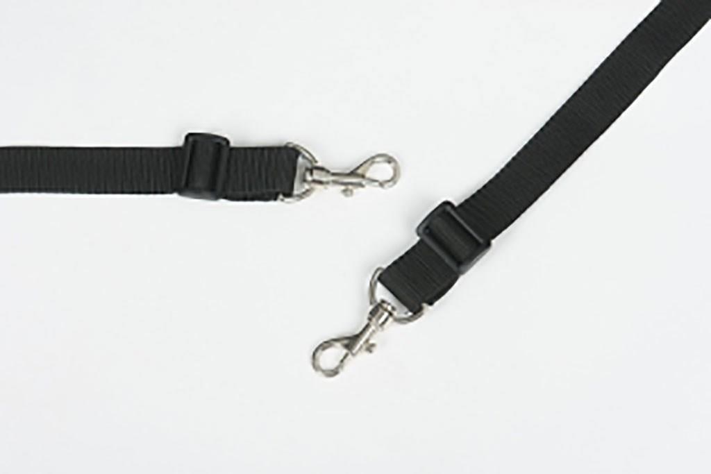 Dva nastavitelné popruhy zakončené karabinou umožňují snadné a bezpečné uchycení nosiče do kufru auta. Popruhy musí být připnuty do rukojetí nosiče a nastaveny na délku, aby se zabránilo pohybu nosiče během jízdy.