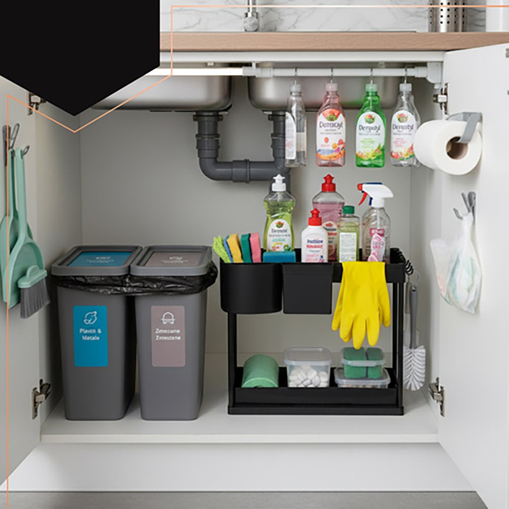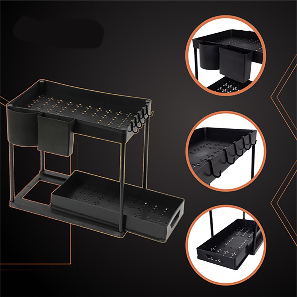 2úrovňový výsuvný organizér pod dřez – černý kuchyňský regál / police