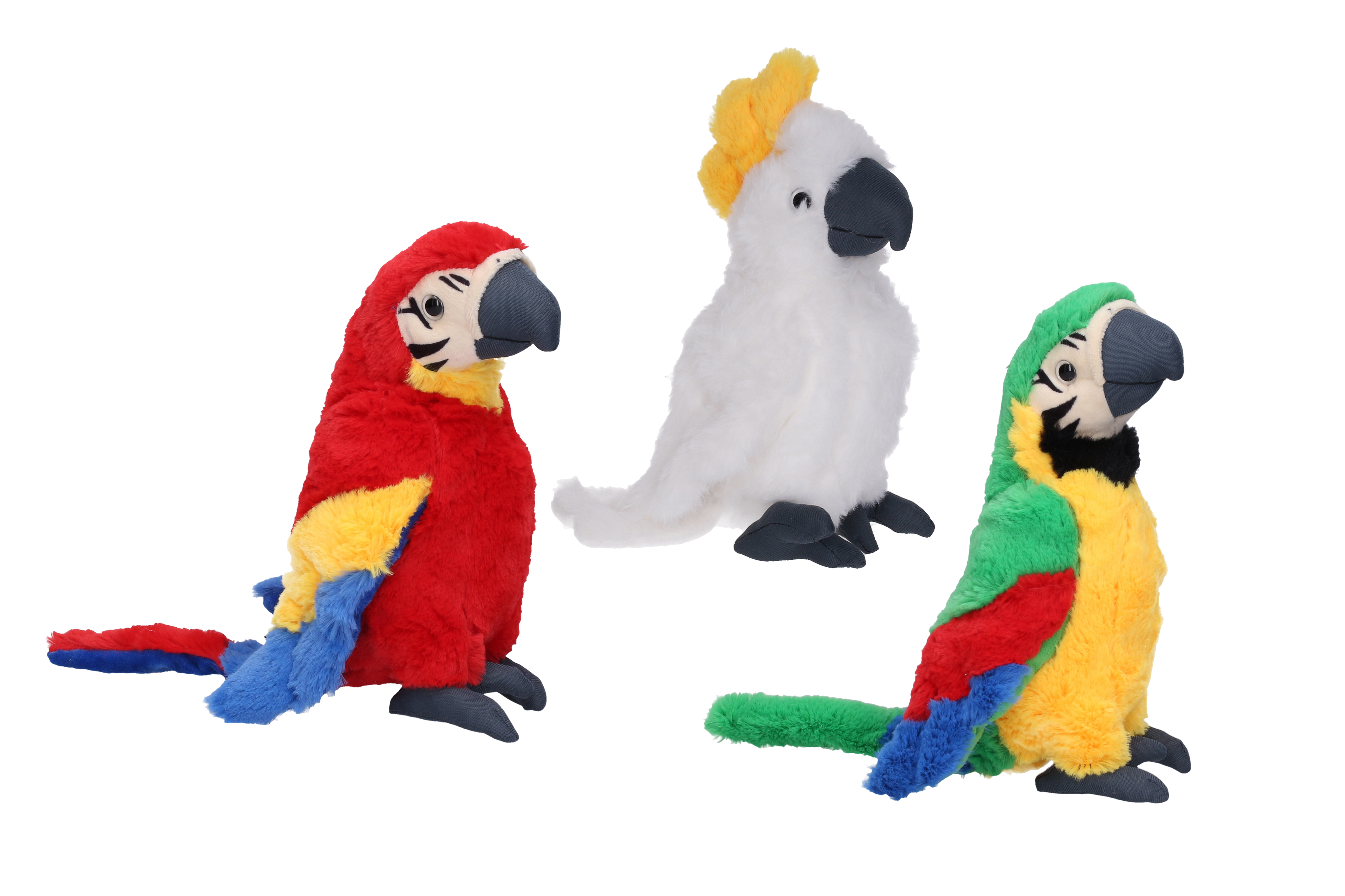 Papoušek 24 cm. 3 varianty - bílá, zelená, červená.