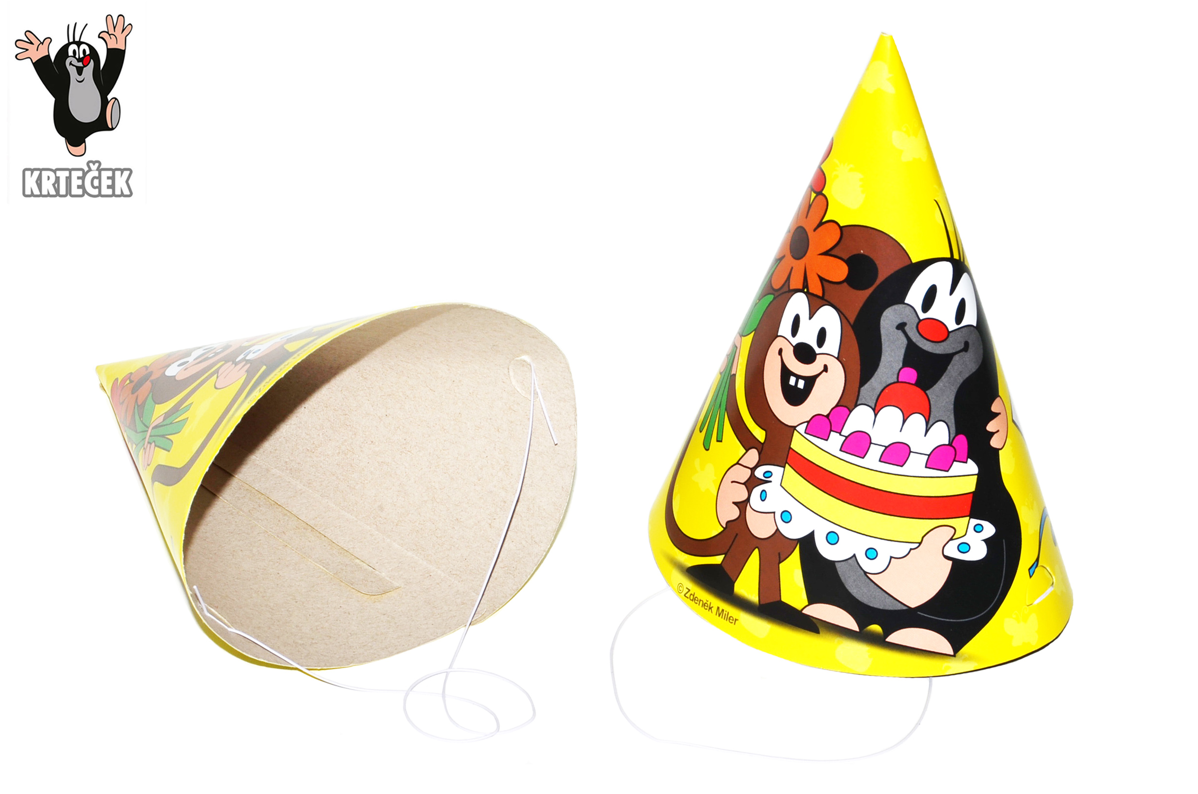 Párty dekorace s motivem Krtečka a jeho kamarádů. Papírová čepička s Krtečkem udělá na každé párty velkou parádu. 15cm, 6 ks.