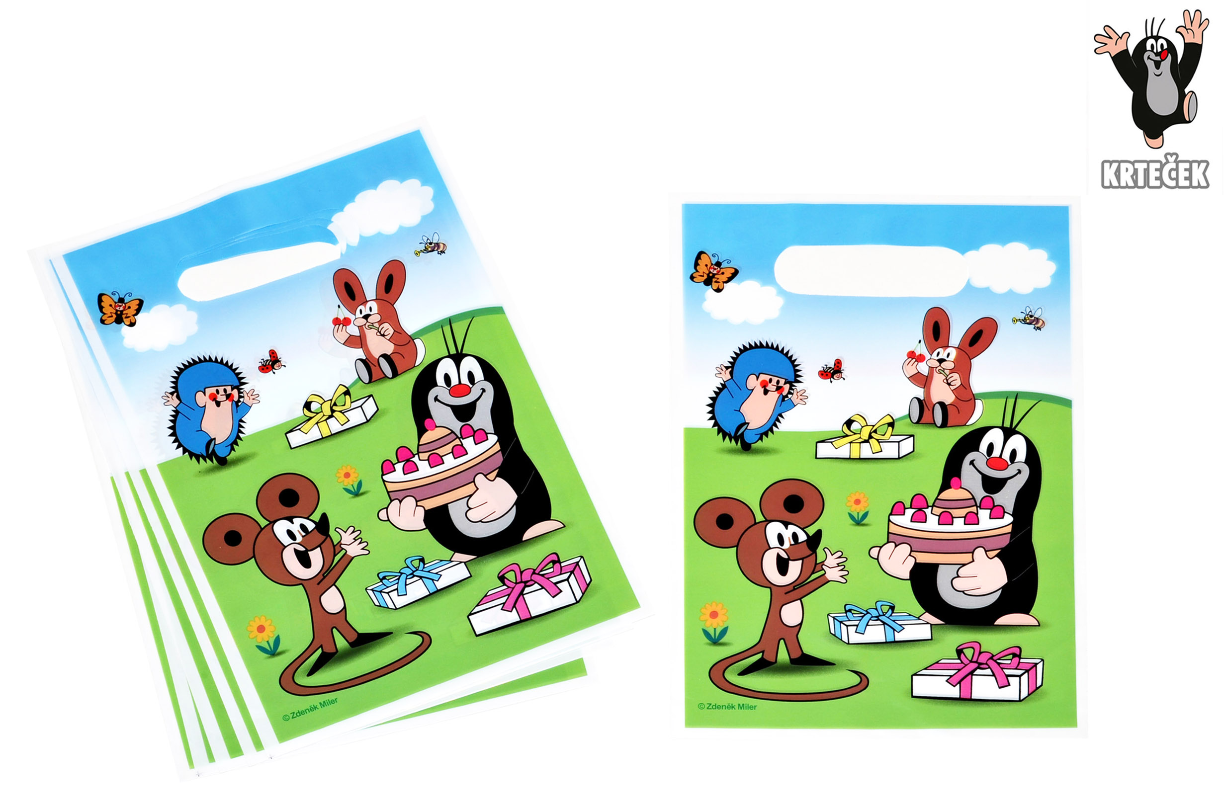 Párty dekorace s motivem Krtečka a jeho kamarádů. Pytlík/sáček s Krtečkem udělá na každé párty velkou parádu. 23 x 16 cm. Počet v balení: 6 ks