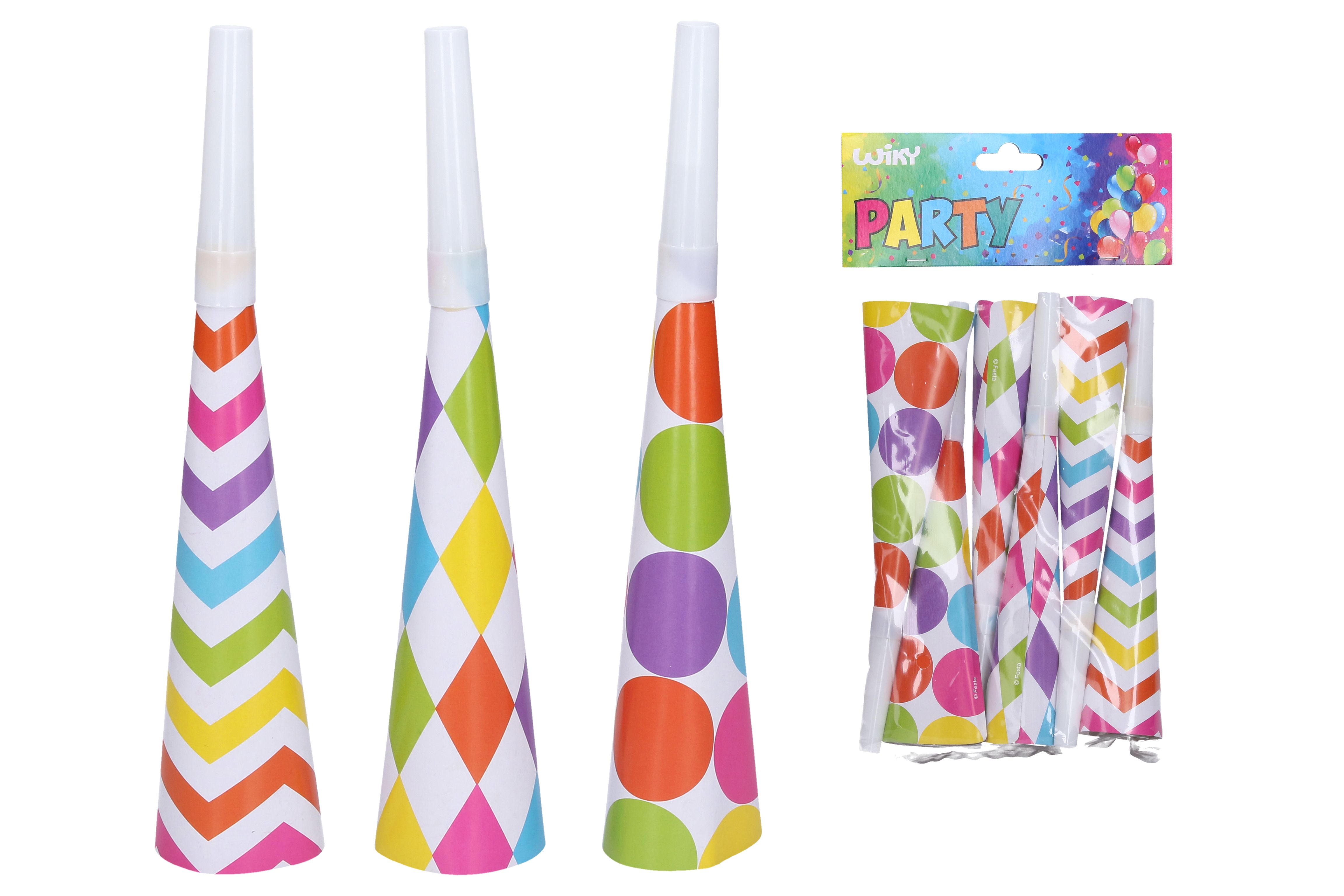 Párty trumpetky MIX 20 cm,. Balení obsahuje 6 ks trumpetek.