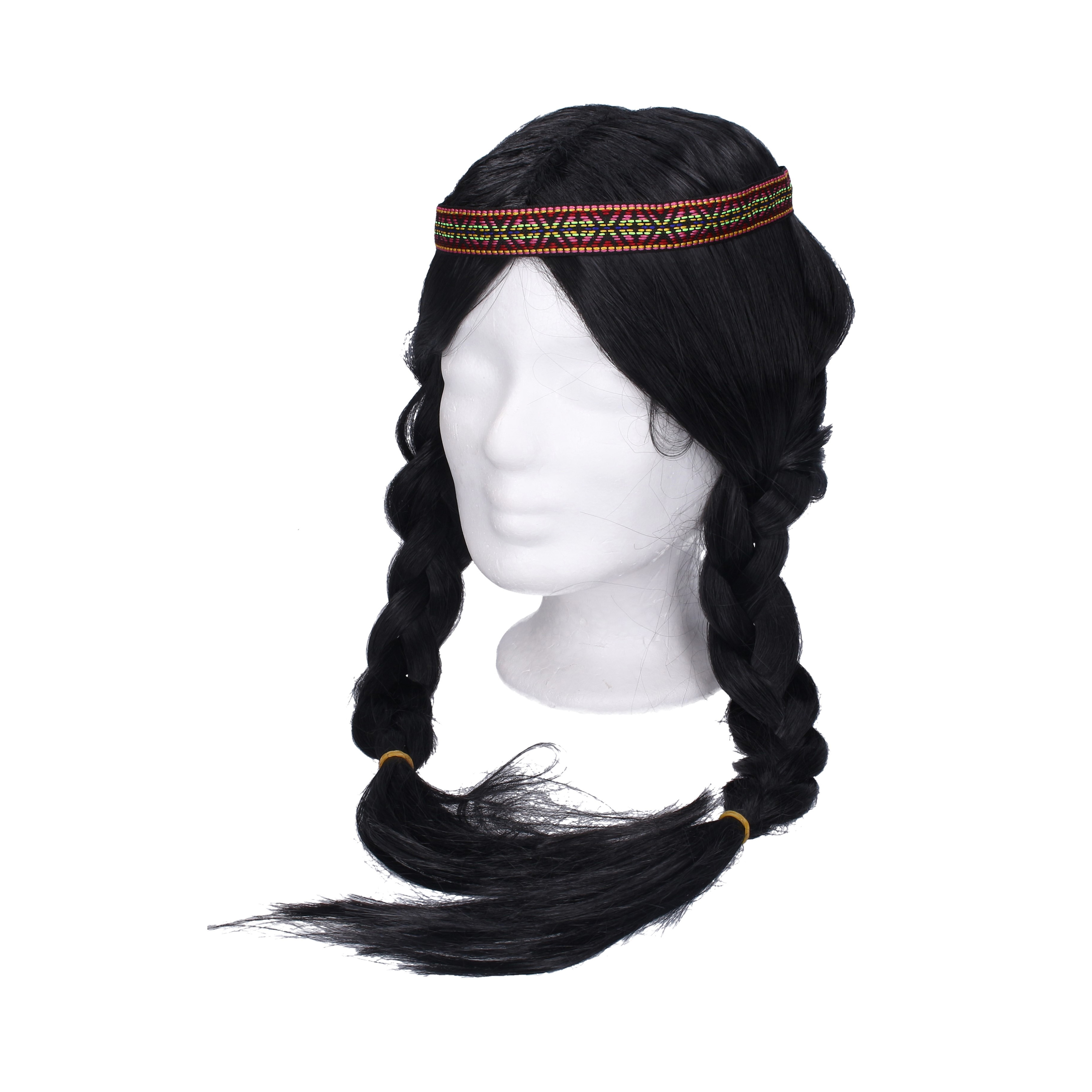 Černá paruka se zapletenými copánky a čelenkou bude skvělým doplňkem ke kostýmu indiána na karnevalovou párty!