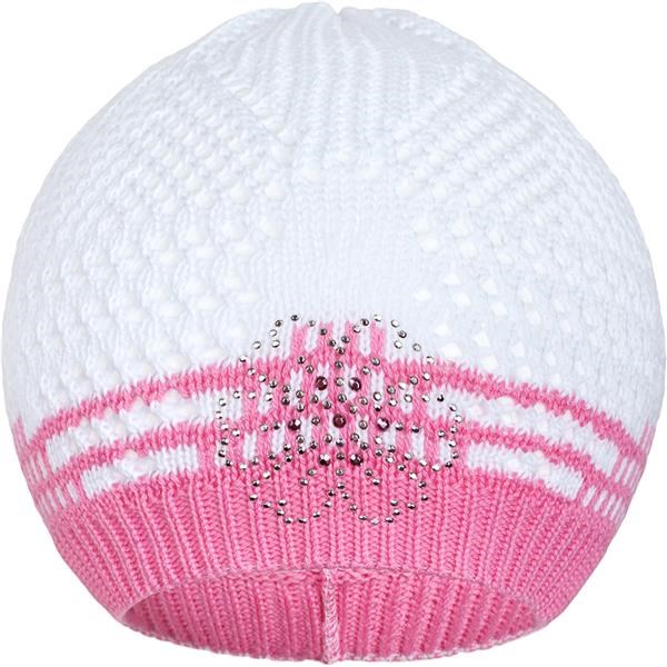 Jarní pletená čepička New Baby. Čepičku zdobí obrázek kytičky, který je ozdobený třpytivými kamínky. Čepička je ušitá z prodyšného materiálu, proto je vhodná pro jarní i podzimní dny. Ideální pro malé i větší děti. Složení: 100% bavlna. Materiál je pružný. Obvod kolem hlavičky cca 40-50 cm.