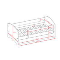Jednolůžková postel se zábranou je vyrobena z kvalitní nábytkové desky o tloušťce 18 mm. Je dostupná v několika velikostech a barevných variantách. Pohádkové motivy zajišťují široký výběr a možnost personalizace.
