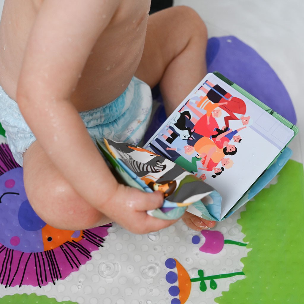 Protiskluzová podložka značky „akuku“ je určena k použití v dětské vaničce, vaně i sprchovém koutě. Zajišťuje bezpečnost při koupání. Barevný potisk zpestří každodenní péči.