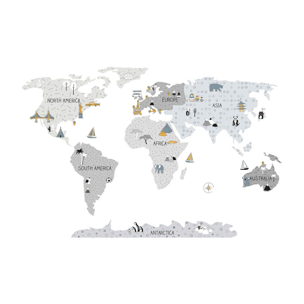 Krásná nálepka na zeď Mapa M. Šedé mapy světa jsou produkty nejvyšší kvality, vyrobené s maximální péčí a pozorností k detailům, udržované v tlumených skandinávských barvách, které dokonale zapadnou do prostoru dítěte. Mapy jsou nejen jedinečnou dekorací, ale také senzačním způsobem učení hrou. Děti poznávají kontinenty, oceány a světové strany, ale i památky a zajímavosti daného regionu či státu. Každý prvek mapy je pečlivě vyříznut z obrysu a nalepen samostatně, což usnadňuje aplikaci, zejména v případě velkých prostor. Velikost samolepky se měří po její aplikaci na zeď, přičemž kontinenty jsou od sebe v patřičné vzdálenosti. Samolepka je zajištěna speciálním matným laminátem, který ji chrání před poškrábáním při každodenním používání a zároveň usnadňuje lepení – fólie je silnější a snáze se přenáší na zeď. Pokud hledáte dokonalý způsob, jak oživit dětský pokojíček, naše samolepky na zeď jsou tou správnou volbou. Objednejte si je ještě dnes a udělejte radost svému dítěti.