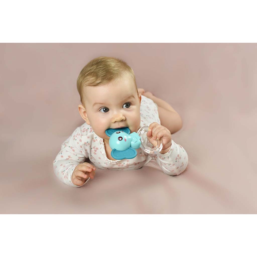 Barevné dětské chrastítko s kousátkem je díky svému tvaru a veselým barvám u dětí velmi oblíbené a stimuluje rozvoj jejich koordinace a smyslů. Je vyrobeno z vysoce kvalitních, bezpečných a odolných materiálů, které lze snadno mýt. Výška cca 10 cm. Určeno pro děti od 3 měsíců života.