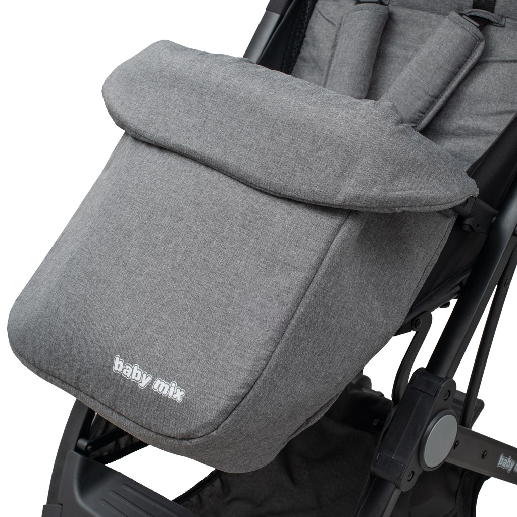 Součástí kočárku je praktický nánožník, který chrání před větrem, chladem a lehkým deštěm. Je vyroben z odolného, snadno omyvatelného materiálu a perfektně padne ke konstrukci kočárku, čímž dítěti zajišťuje teplo a pohodlí i v chladnějších dnech. Nánožník se snadno připevňuje díky pohodlnému zapínání a esteticky ladí s designem kočárku.
