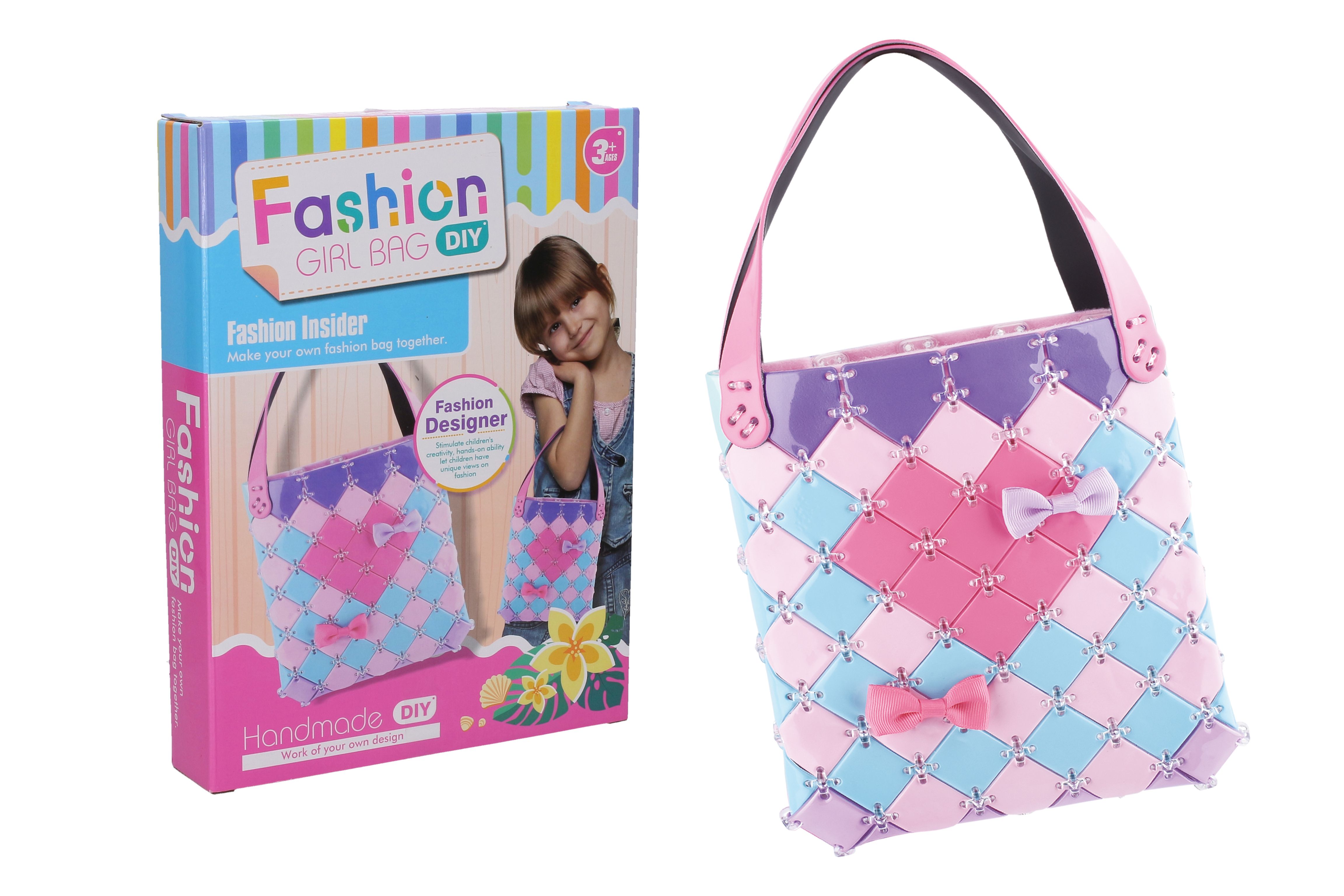 Tvorba tašky. Obrázkový návod na sestavení na zadní straně obalu.