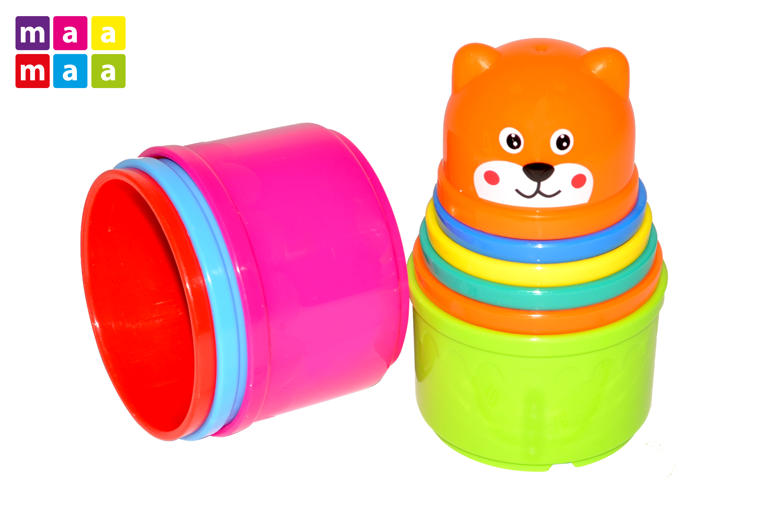 pyramida se skládá ze setu různě velkých a různě barevných kelímků