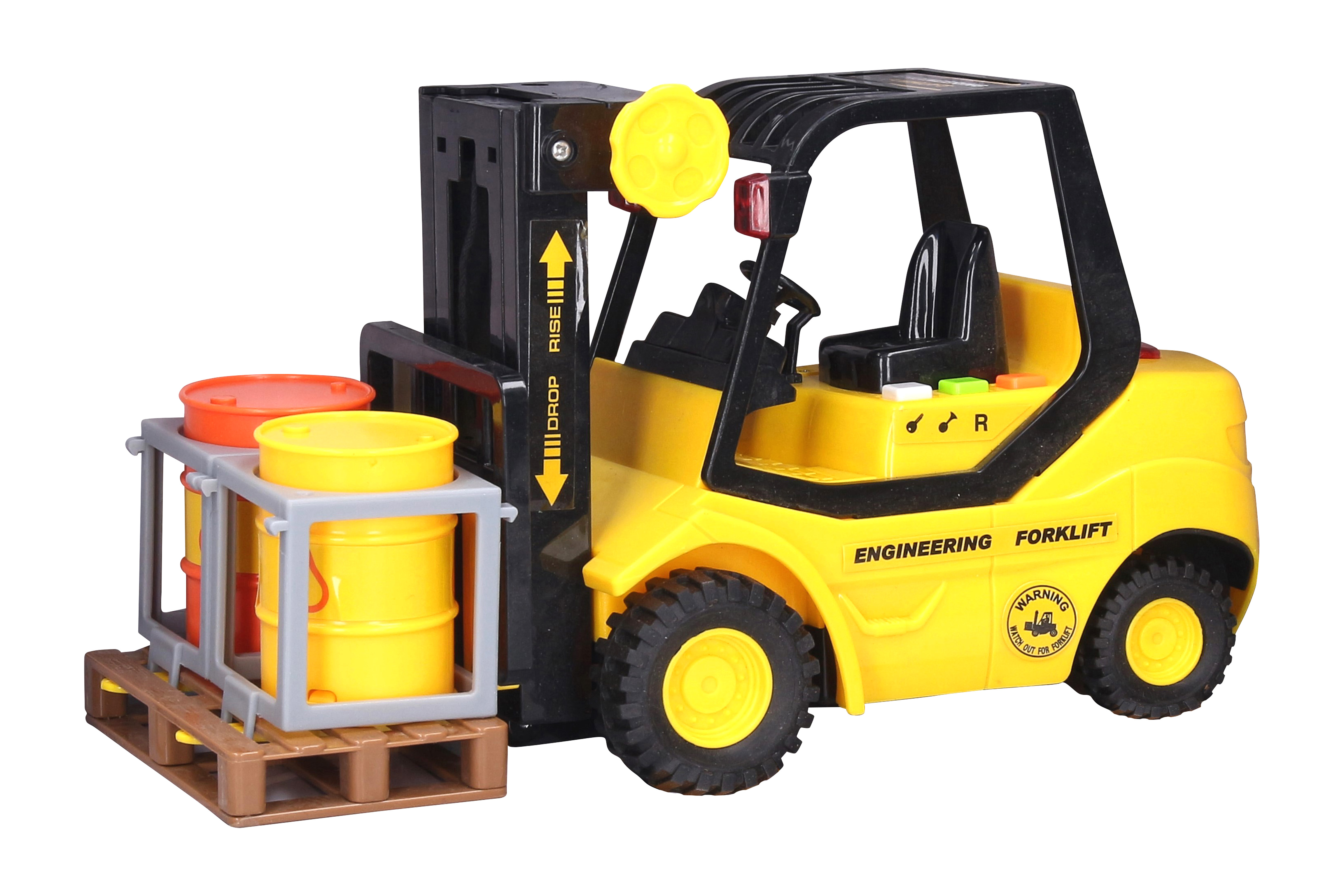 Funkčnost: stiskem tlačítek svítí a vydává zvuky, má pohyblivou přední část pro zdvih přiložené palety.